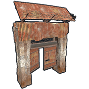 The Sheet Metal Door is the most common door found on bases due to its resistances to melee weapons and fire but relatively cheap cost to craft. Regardless, it is still relatively weak to explosives compared to its expensive indirect upgrade, the 'Armoured Door'.